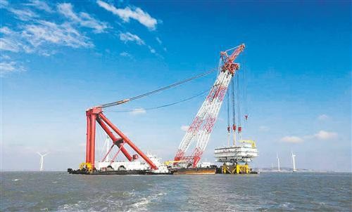 日前,福建首座220kV海上升壓站“落戶”三峽集團福清興化灣海上風電場。圖為國內(nèi)首個將SVG動態(tài)無功補償裝置設(shè)置在海上的升壓站,也是目前國內(nèi)集成度最高,單體最大最重的海上升壓站。
